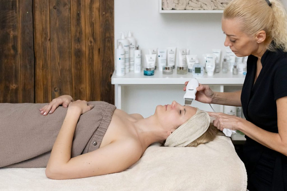 Ultraskaņas tīrīšana: nesāpīga, ādu viegli sildoša, virspusēji attīroša procedūra. Piemērota arī jutīgai, sausai un plānai ādai.